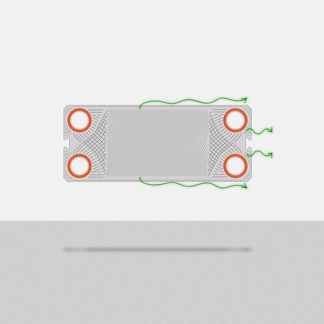 - The gap between the plates ensures that in case of possible leaks, the fluid is directed to the external environment and not to the other fluid.